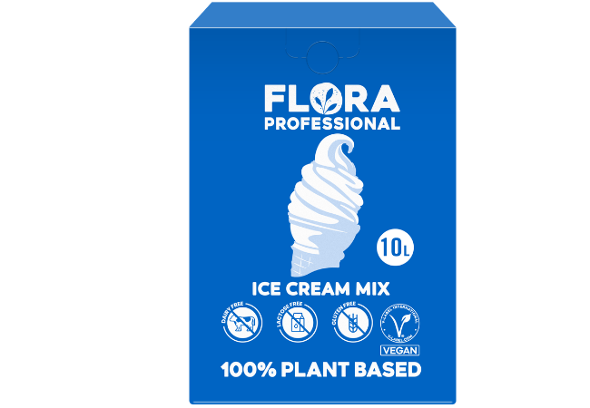 Die cremige fluffige Konsistenz und der authentische Geschmack überzeugen Deine Gäste. Der Flora Ice Cream Mix kann 1:1 wie herkömmliches Eis verwendet werden.